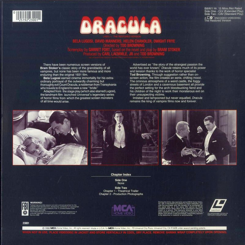 - 1988 CLV+CAV Remastered Encore Edition pressing of the 1931 film